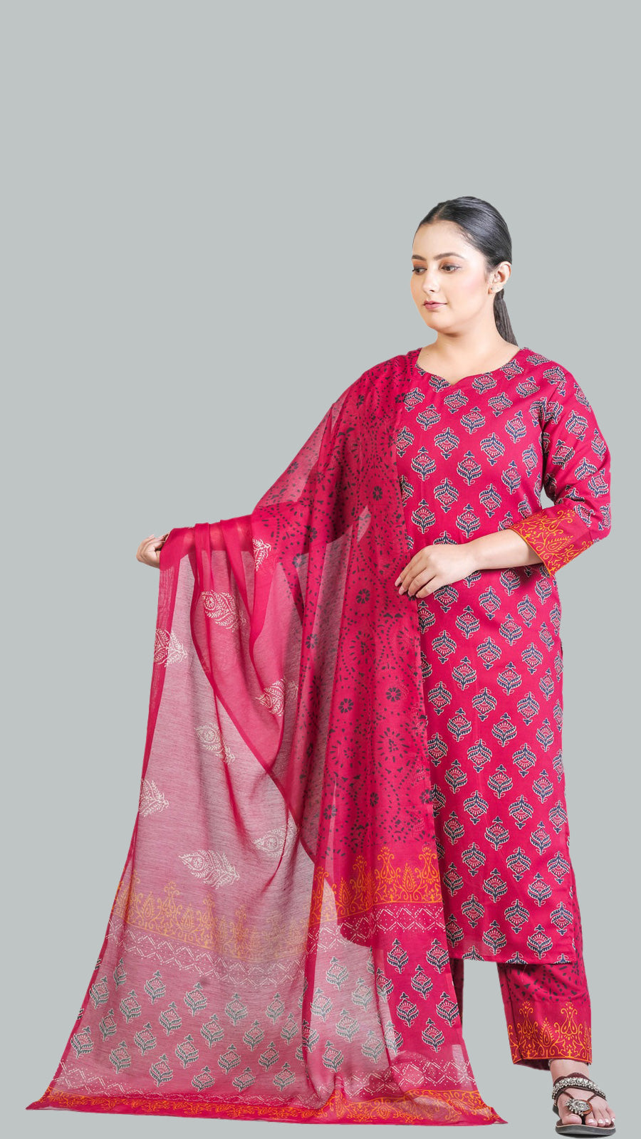 Tatav by Sri Cherry Temple Theme Rayon Block Print Suit Set